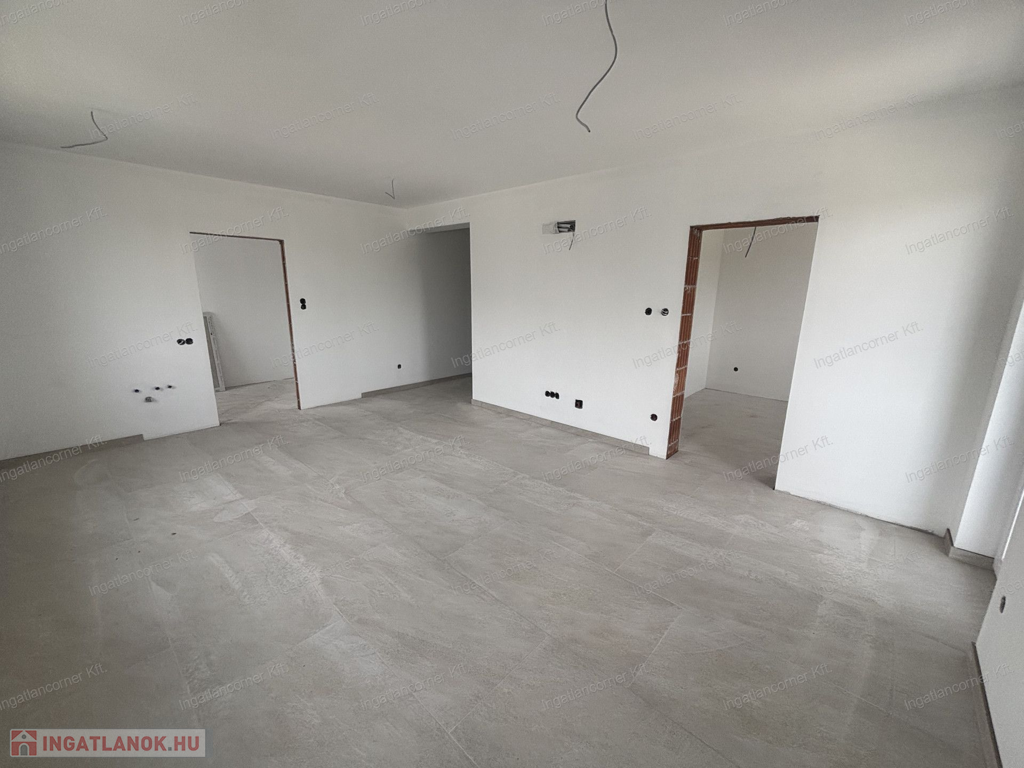 4, lakás nettó 59,77 m2 + 9,74 m2 terasz, nappali + 2 háló, 108 m2 telek, fan-coil klíma (a hálószobákban kiállás előkészítés), riasztó, kaputelefon, 2db parkoló
