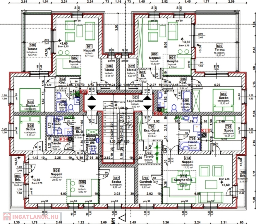 - a meleget a padlófűtés, a hűtést (a fűtésre is használható) fan-coil rendszer biztosítja