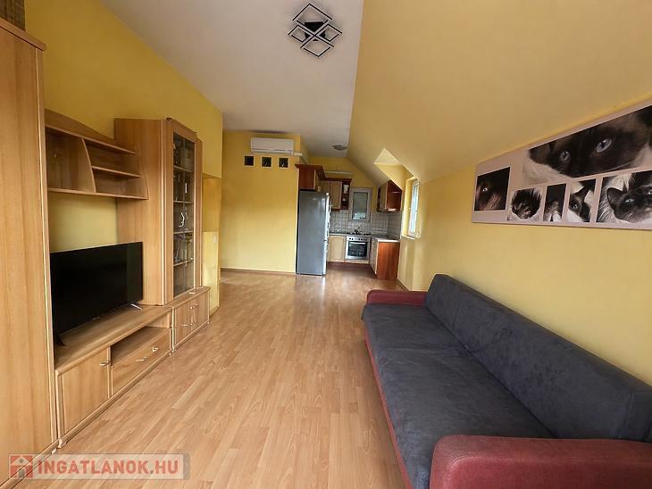 Elosztása praktikus: amerikai konyhás nappalival, 1 külön nyíló hálószobával, valamint fürdőszobával és WC-vel került kialakításra. A fűtést kondenzációs kazán biztosítja, a nyári nagy melegben pedig egy hűtő–fűtő klíma gondoskodik a kellemes komfortérzetről.