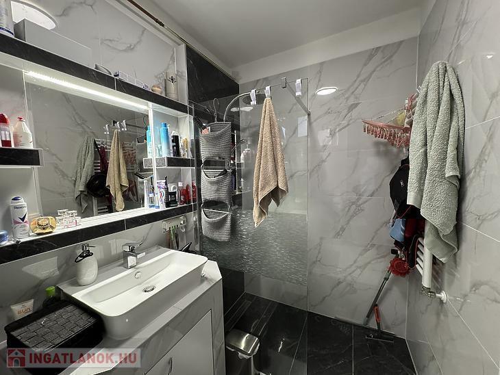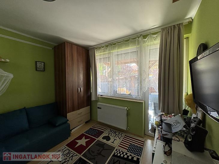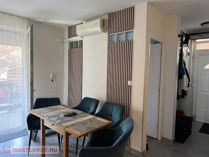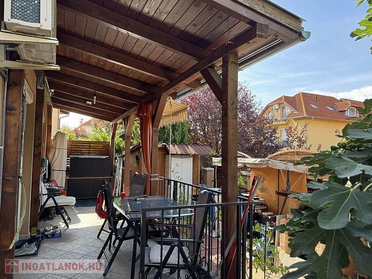 Az ingatlanhoz saját, elkerített, gondozott 30 m²-es kert tartozik, amely egy 17 m²-es teraszról közelíthető meg – kiváló helyszín lehet pihenéshez vagy kerti programokhoz.
