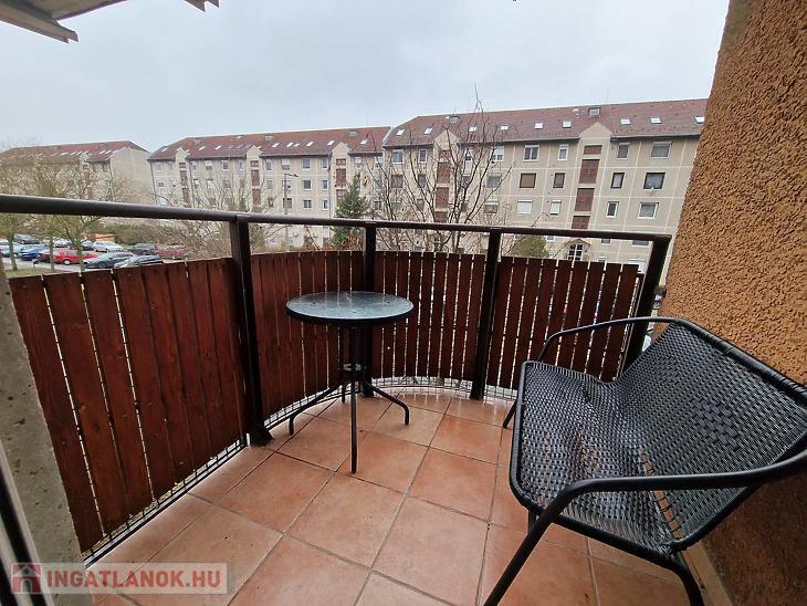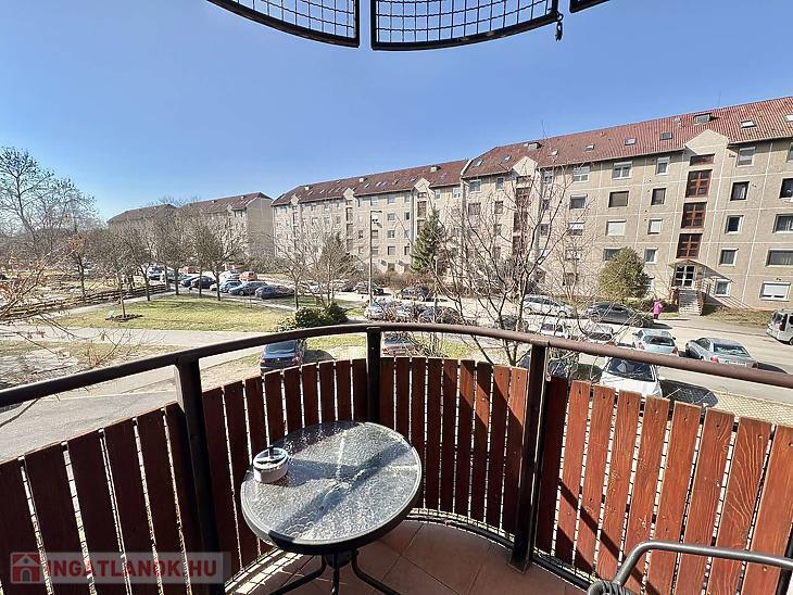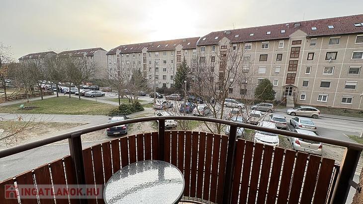 A nappaliból egy 4 m²-es erkélyre léphetünk ki, ahonnan parkos, zöld környezetre nyílik kilátás, ami nyugalmat és csendet biztosít.