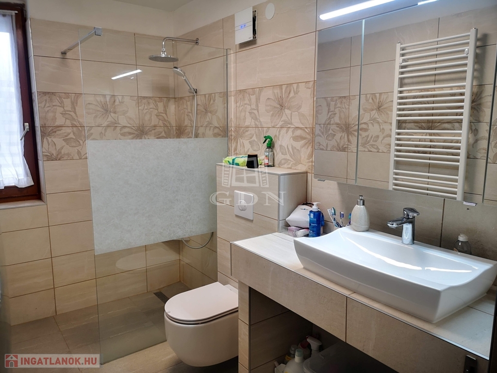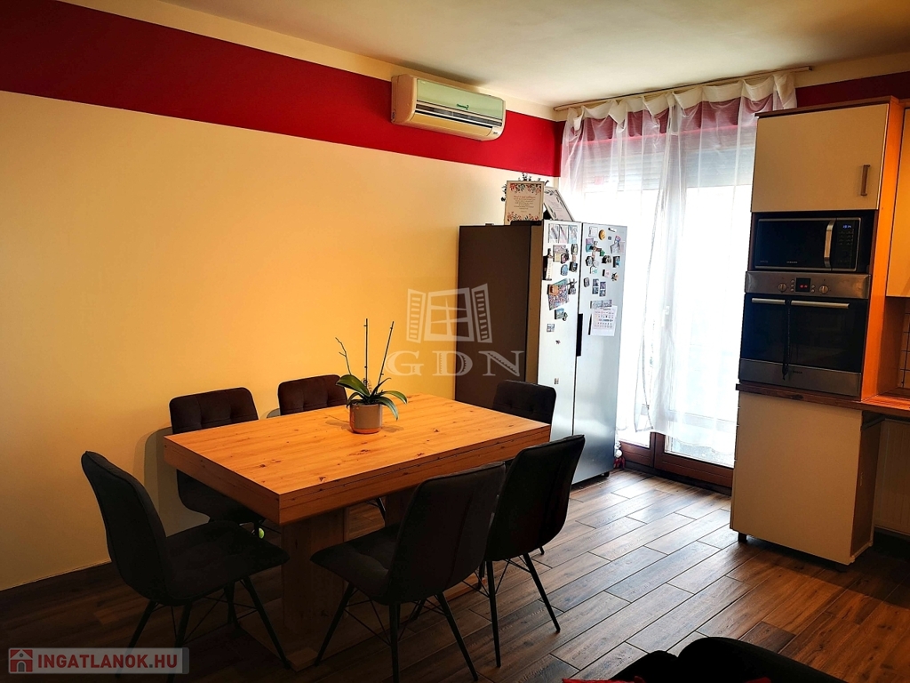 Dunakeszi Alagliget lakóparkban kínálunk eladásra, 2006-ban épült, 9 lakásos, tégla építésű társasházban, egy emeleti, nappali+ 3 hálószobás, francia erkélyes, igényesen felújított lakást, praktikus elrendezéssel, tágas terekkel. Tájolásának köszönhetően rendkívül világos. Konyhája gépesített, a nappaliban hűtő-fűtő klíma növeli a komfortérzetet, a nyílászárók redőnnyel, szúnyoghálóval felszereltek. A lépcsőház tiszta, rendezett, jó lakóközösséggel. A ház mögött közös kert található, gyermekek részére kialakított "kis játszótérrel". A lakáshoz tartozik egy saját, fedett beálló, illetve egy külső parkolóhely. Ideális választás ha vágyik egy igényes otthonra, kertvárosi hangulatra. Közelben található bevásárlási lehetőség, iskola, óvoda, buszmegálló.