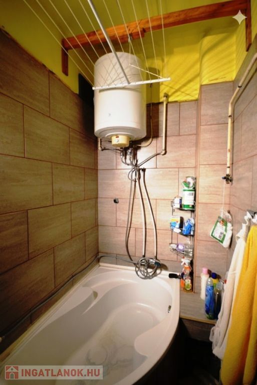A lakás lakható, de felújításra szorul. A fűtést gázkazán biztosítja radiátorokon keresztül, a melegvizet villanybojler adja, a konyha és a szoba laminált padlóval, a többi helyiség járólappal burkolt, a falak tapétázottak. A fürdő felújítását már elkezdték, de a lakás többi részét már az új tulajdonosnak kell majd a saját ízlésére formálnia! A lakáshoz tartozik padlástér és kinti tároló is.