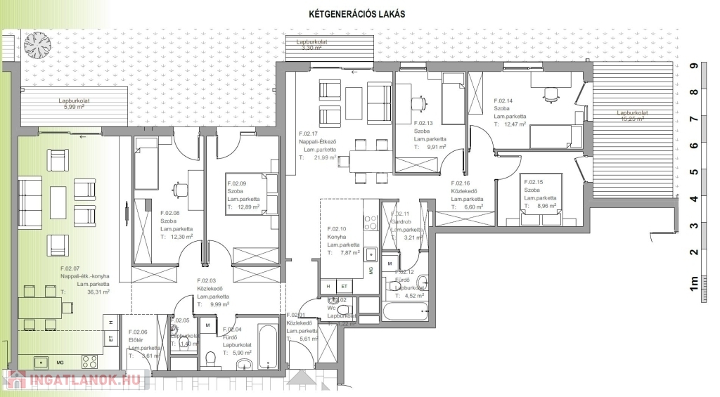 -II.09 lakás 90,1 m2; terasz: 87,86 + 22,17 m2 ár: ELKELT!