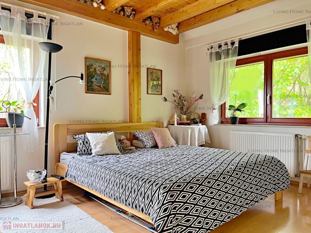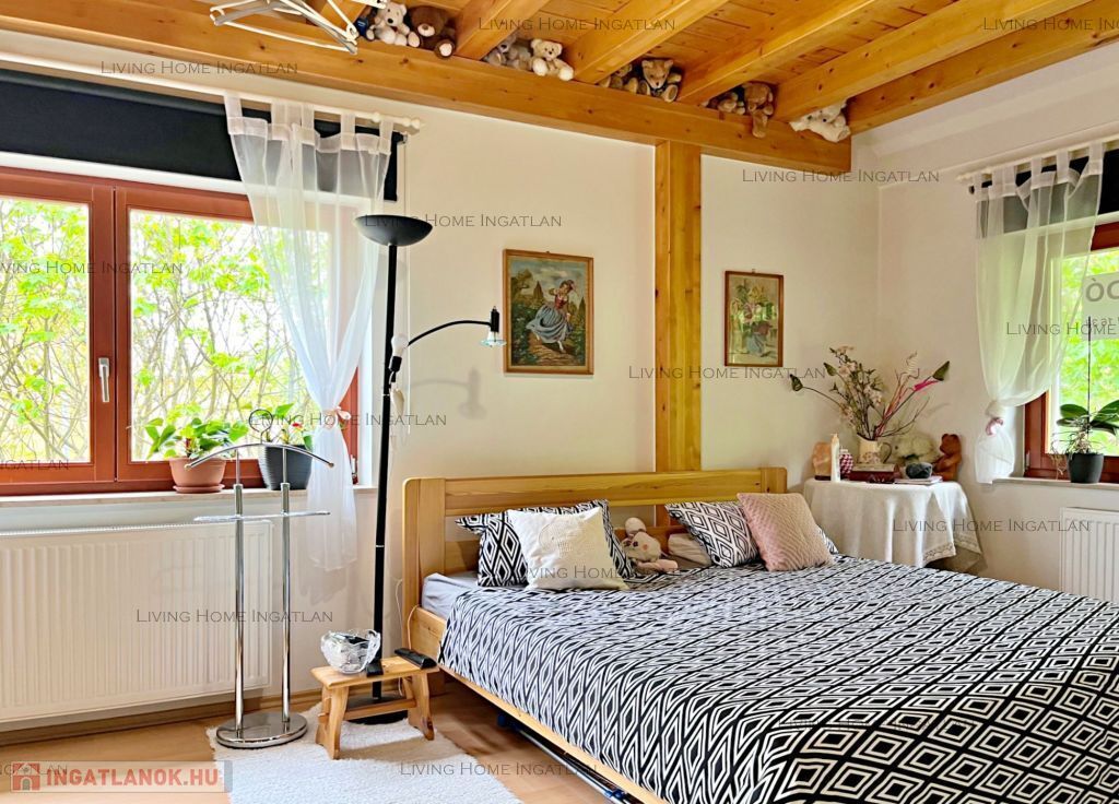 Hörmann ajtók, szintenként légkondicionáló, új Wiesmann kazán. Padlástér kialakítva további tárolási lehetőségnek.