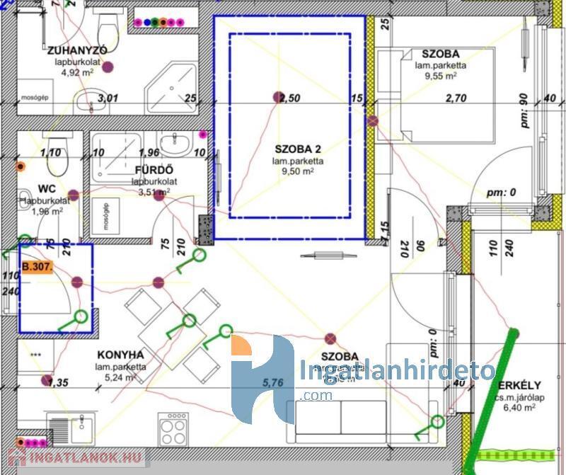 -Hő- és hangszigetelés: külső főfalak 15 cm vastag kőzetgyapot szigetelése, 12 cm vastag lépésálló hőszigetelés, közbenső födémeken 6 cm lépésálló hangszigetelés