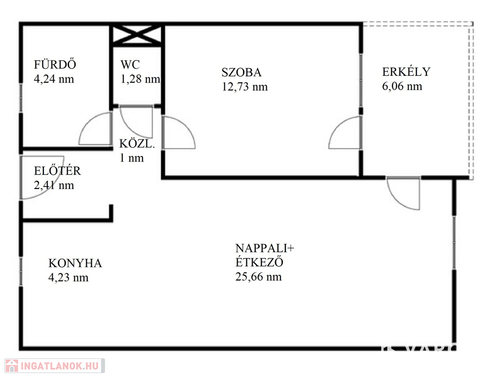 Ez a lakás a társasház első emeletén található (C36), 51 nm hasznos alapterülettel rendelkezik. A lakótér helyiségei: nappali, konyha étkezővel, 1 szoba, fürdőszoba, közlekedő, wc, erkély.