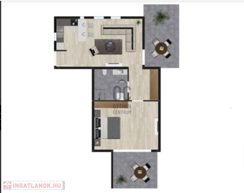 A 58,18 m2-en a lakás magában foglal egy kellemes előszoba-konyha-étkezőt, egy tágas nappalit, egy fürdőszobát, egy szép hálószobát, egy mellékhelyiséget, egy gardróbot és két méretes, RÉSZBEN fedett teraszt, mely gyönyörű zöldövezeti területre néz.