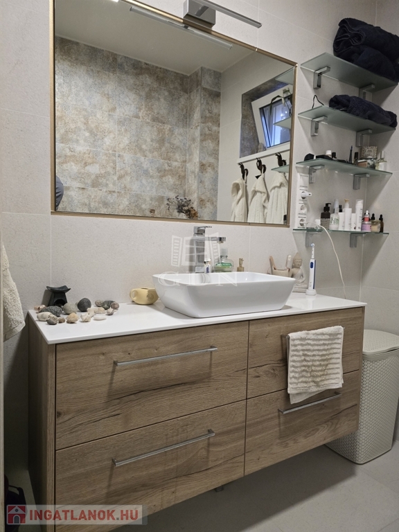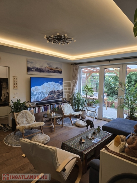 A lakás kiváló elosztással rendelkezik, meleg, déli tájolású nagy ablakokkal, fedett terasszal. Az öntözőrendszerrel kialakított kertben fatüzelésű erdélyi fürdődézsával és egy prémium kivitelezésű 6 személyes finn szaunával, a nyári madárcsicsergés mellett még a téli hétköznap esték is meghitt nyugalomban és teljes feltölődésben telnek.