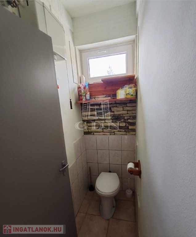 Zuhanyzós fürdőszoba, külön WC, járólap burkolattal