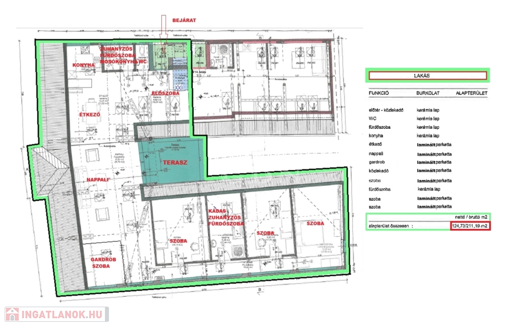 Impozáns belső: Három hálószoba, két fürdőszoba, külön WC, hatalmas gardrób, plafonig érő beépített szekrények, valamint egy lenyűgöző nappali–konyha–étkező tér, amely tökéletes családi és baráti összejövetelekhez.