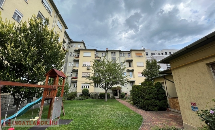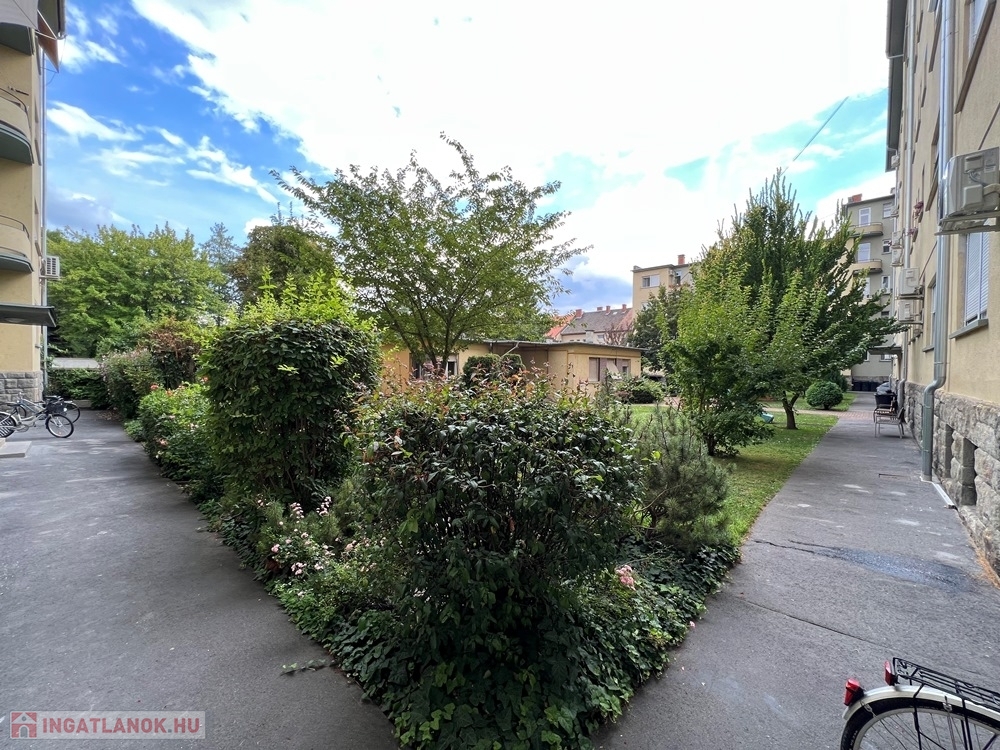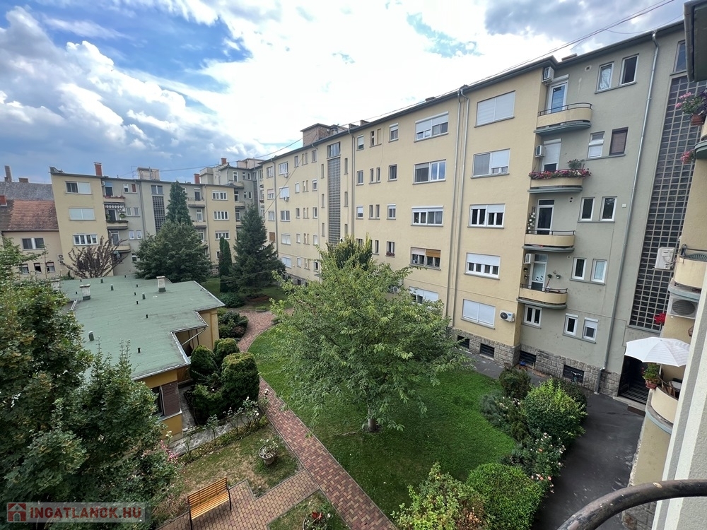 Győr-Belvárosának rendkívül kedvelt részén, Baross úttól, Széchenyi tértől pár perces sétatávolságra, a Munkácsy Mihály úton, rendezett, zárt belső udvarral, kerttel rendelkező, hangulatos, liftes társasház 1. emeletén, konyha – étkező + nappali + 1 hálószobás, továbbá különálló fürdőszobával, különálló WC-vel, különálló kamrával, 2,73 m2-es ERKÉLLYEL felszerelt, 55 m2 hasznos alapterületű, alacsony rezsijű téglalakás, saját 3,4 m2-es TÁROLÓVAL, Zsinagógára való rálátással eladó.