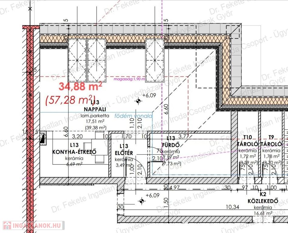 Bruttó lakótér: 57,28 nm / nettó lakótér: 34,88 nm, 1 szobás / tetőtéri elhelyezkedésű.