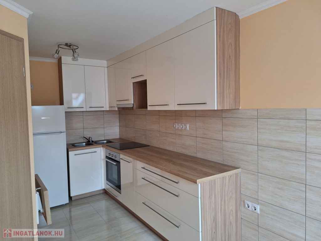 A konyhában, beépített, gépekkel felszerelt konyhabútor található. Igény esetén a hűtőszekrény is maradhat. A konyha mellet egy kis kamra is helyet kapott, mely tárolásra remek lehetőséget nyújt.