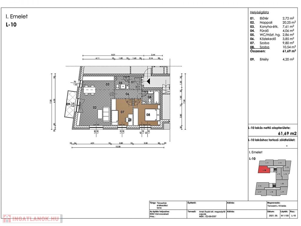 L10 – 1. emelet, 61,69 m2 + 4,2 m2 erkély bruttó 59.005.750 Ft
