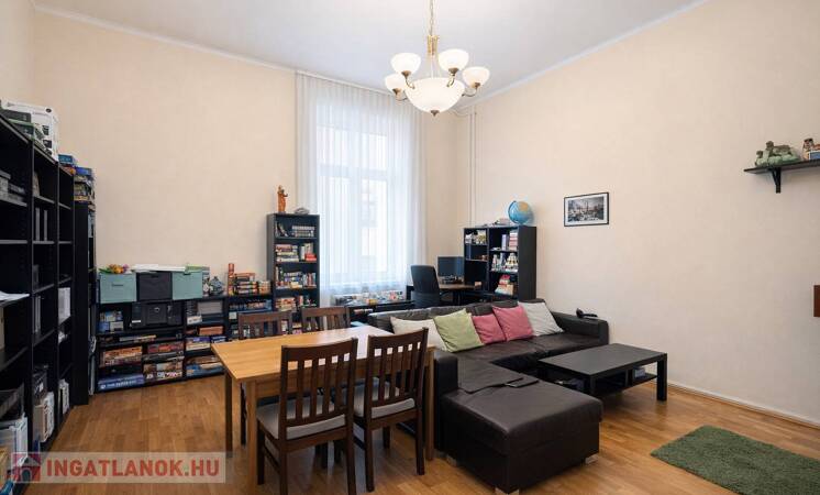 A lakás nagypolgári hangulata azonnal megfogja az embert: nagy ablakok, rengeteg természetes fény, kényelmes elosztás és a 3,5 méteres belmagasságnak köszönhetően, egy olyan tágasság, amit a modern újépítésűek már ritkán adnak.