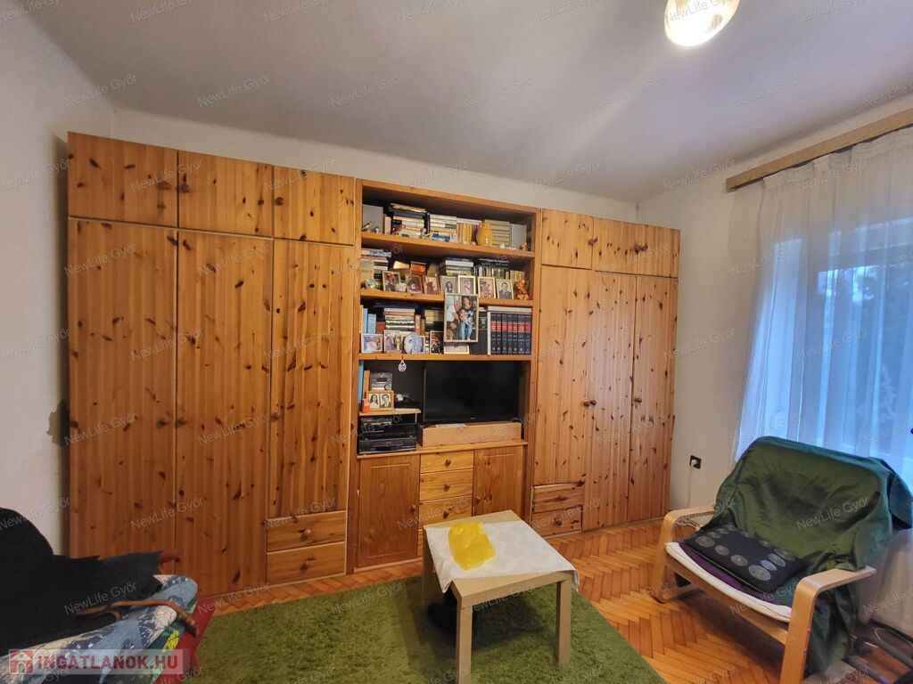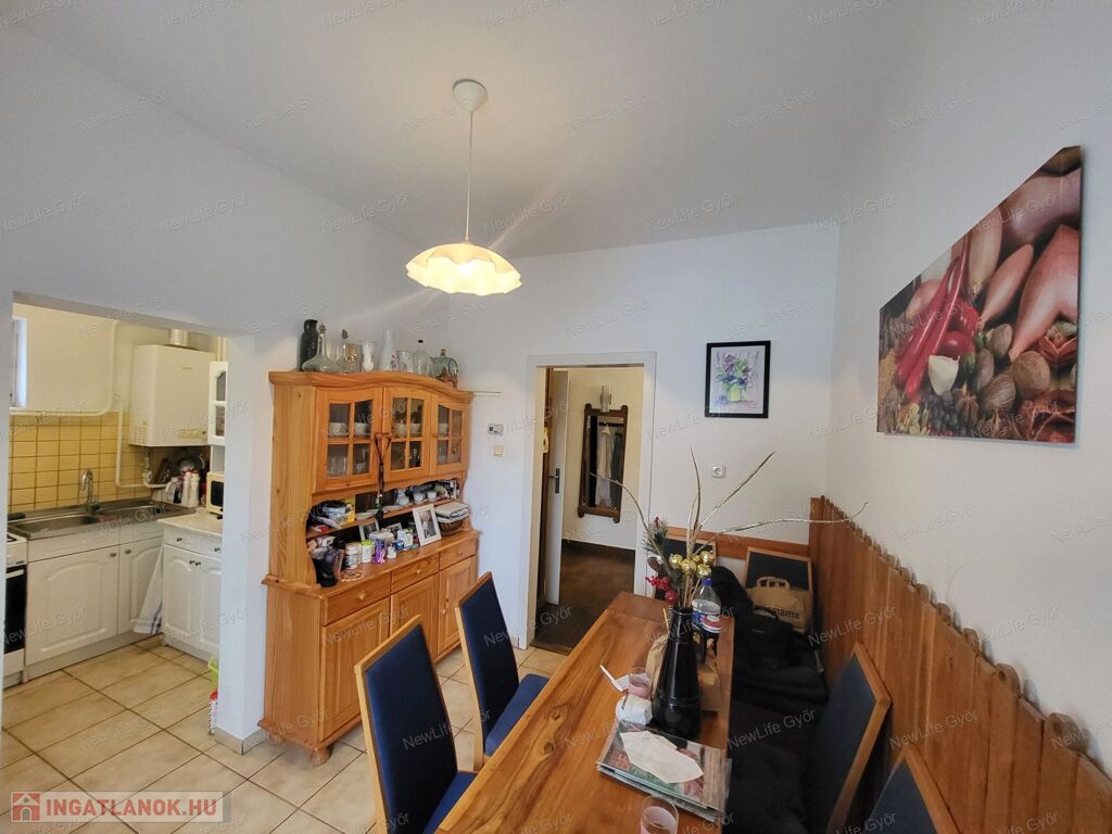 Győr–Ménfőcsanakon, frekventált, mégis nyugodt kertvárosi környezetben eladó egy kétlakásos társasház első emeleti, külön bejáratú lakása, amely valójában egy családi ház teljes felső szintjét jelenti, saját használatú kerttel és melléképületekkel.