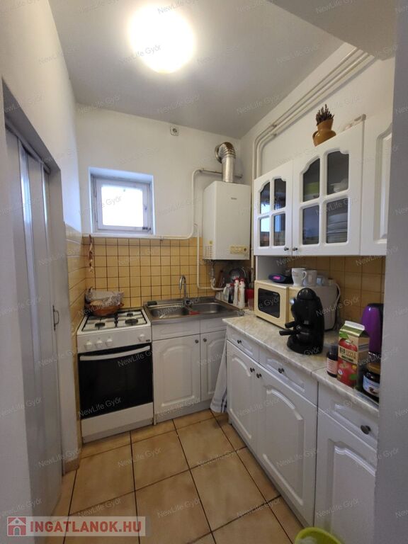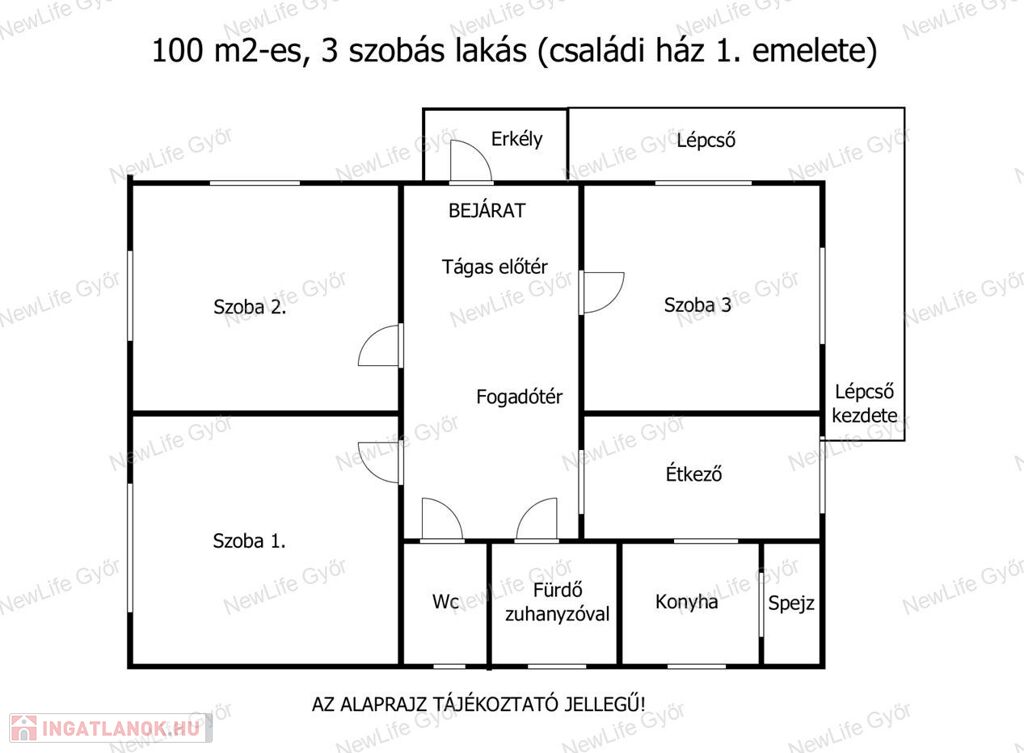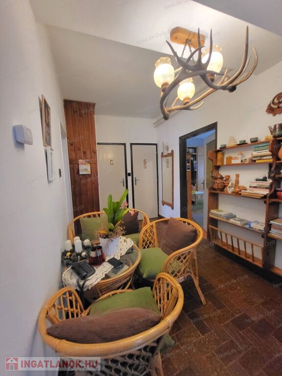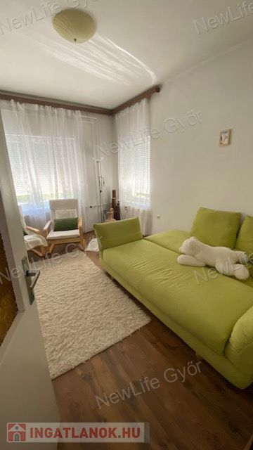 Győr–Ménfőcsanakon, frekventált, mégis nyugodt kertvárosi környezetben eladó egy kétlakásos társasház első emeleti, külön bejáratú lakása, amely valójában egy családi ház teljes felső szintjét jelenti, saját használatú kerttel és melléképületekkel.