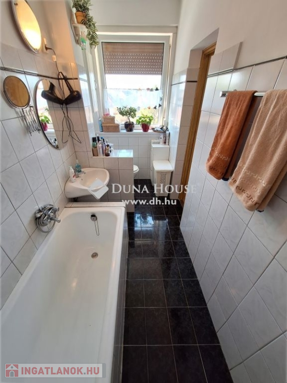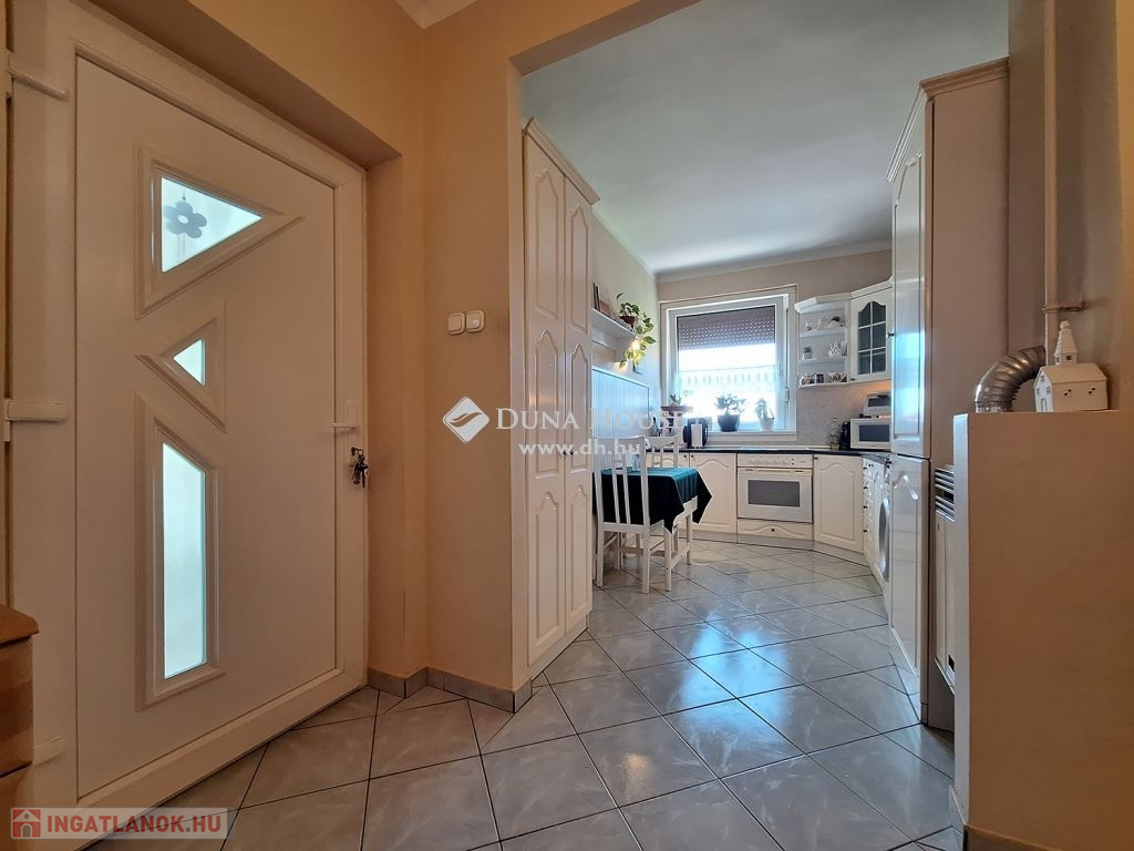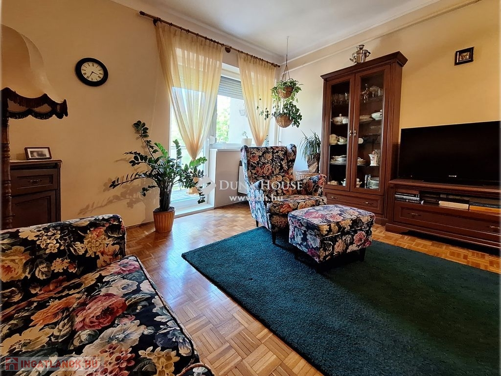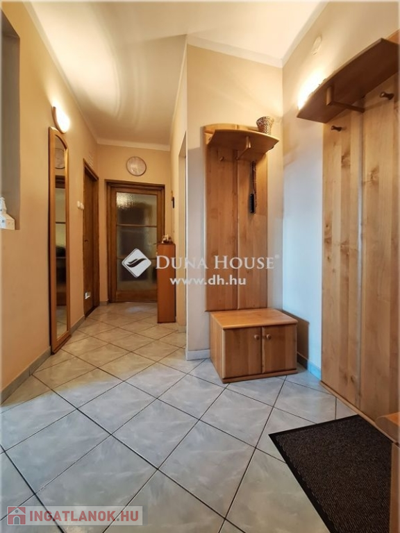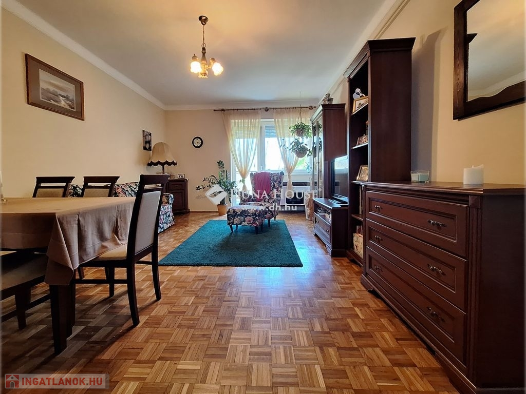 Az előszobába beérve kényelmes ülő és tárolófelület fogadja a hazaérkezőket, egy nyitott téren keresztül a konyhába invitálva. A konyhában elektromos főzőlap és sütő, valamint mosogató került beépítésre, továbbá itt kapott helyet a mosógép is. Méretéből kifolyólag a mindennapi étkezéshez is teret biztosít, a pakoláshoz számtalan szekrény áll rendelkezésre. A folyosón külön kamra rejti a hétköznapok finomságait. A fürdő a WC-vel egy térben, ám némileg elszeparáltan található, a hatalmas ablak világosságot, szellőztetést biztosít. A szobák nagy méretűek, jelenleg egymásból nyílnak, de apró leválasztással önállóan is megközelíthetőek. Mindkét lakóhelyiségben eredeti, kiváló minőségű fa parketta található, a többi helyiség kerámia burkolatos. A nagyobbik szoba a családi étkezésekhez is kiváló helyet biztosít, az esti kávézáshoz a 4,8 m2-es fedett loggia nyújt kellemes teret.