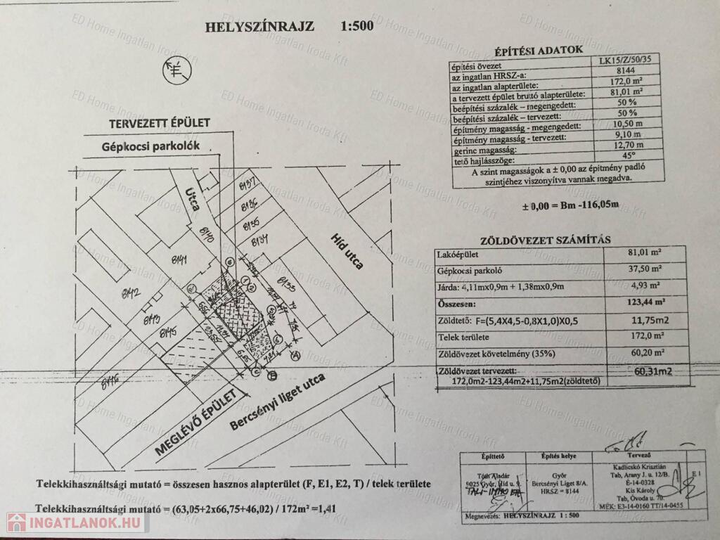 Az ED Home Ingatlaniroda eladásra kínálja az alábbi Bercsényi liget legelején épült új társasházban az alábbi lakást. Belváros a kettős hídon keresztül, Révfalu a Jedlik hídon keresztül pár perc sétával elérhető.Az épület a Bercsényi liget 8. szám alatt felépült, jelenleg már befejezett három lakásos társasház. Az épület földszintjén található egy üzlethelyiség, az első és második emeleten egy-egy amerikai konyhás nappali + két hálószobás, fürdőszoba és külön wc-vel rendelkező lakás. A tetőtérben még alakítható alaprajzi elrendezésű lakás, amelyhez egy 23,5 m2 nagyságú zöldtetős, körpanorámás tetőterasz is tartozik.A jelenleg ajánlott lakás az első emeleten van. Az ár bruttó ár + 5,0 % ÁFA- tartalmaz, és egy emeltebb készültségi szintre vonatkozik ! Tartalmazza a belső ajtókat, valamint hidegburkolatú helyiségek padlóburkolatát, az egyik háló lamináltpadlós burkolatát és az erkély burkolatát.A lakáshoz vásárolható kocsibeálló 2,0 millió Ft + ÁFAAmennyiben hirdetésem felkeltette az érdeklődését, több információra van szüksége, szeretné megnézni a helyszínen, hívjon bármikor.Simon Kázmér 30/216 5557