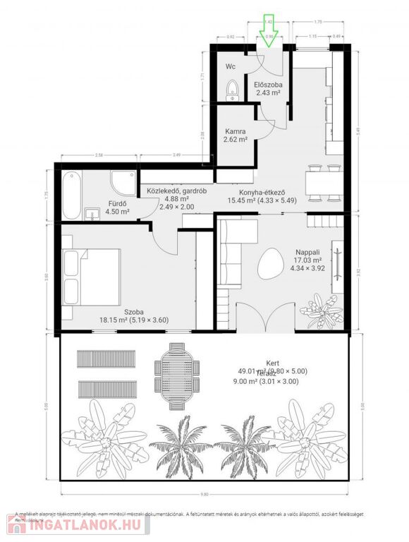 ✅ 9 m² terasz közvetlen kertkapcsolattal