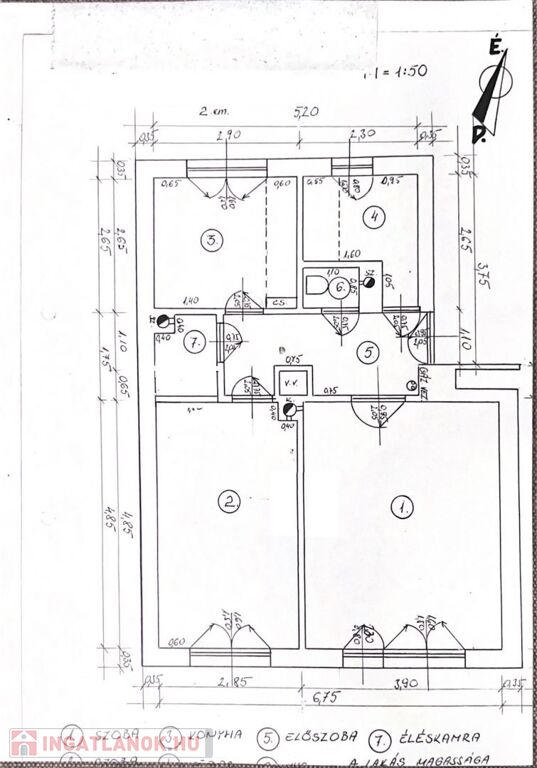 Az előszobából nyílik két külön bejáratú szoba, a konyha–étkező, a mosókonyha, a zuhanyzós fürdőszoba kétállású mosdóval és WC-vel, valamint egy külön WC is.
