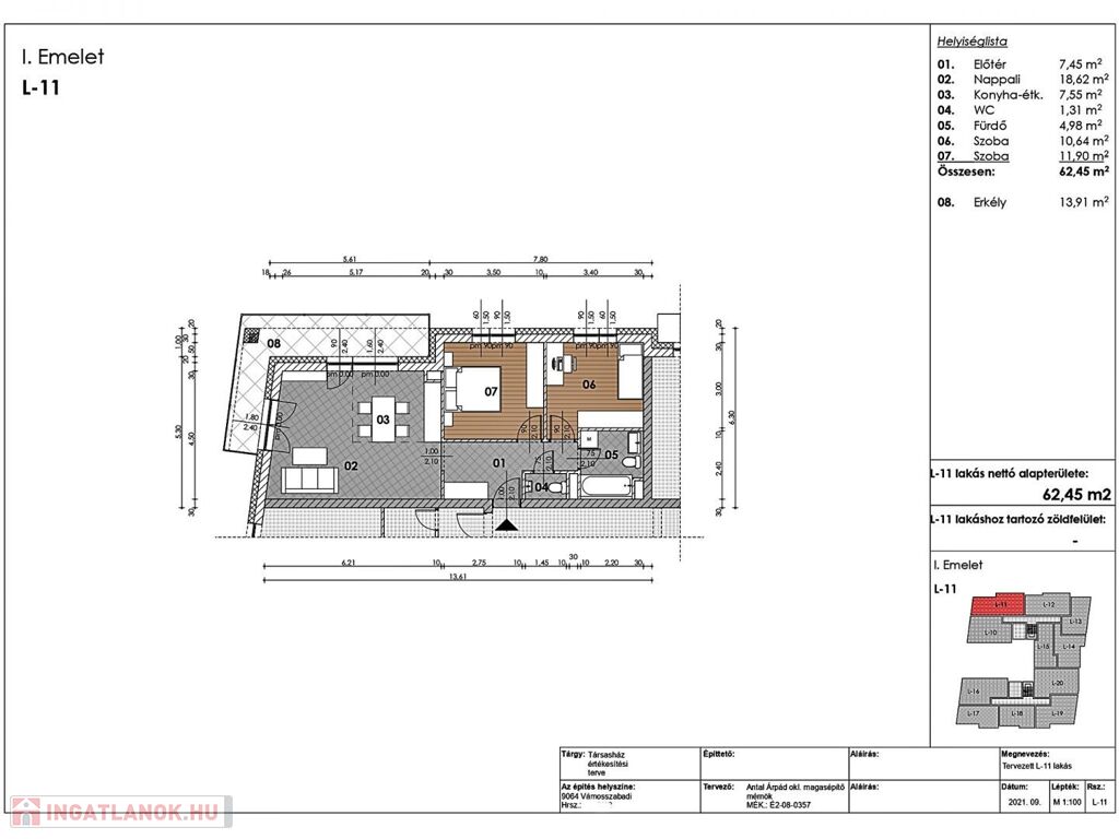L11 – 1. emelet, 62,45 m2 + 13,91 m2 erkély bruttó 68.710.950,-Ft