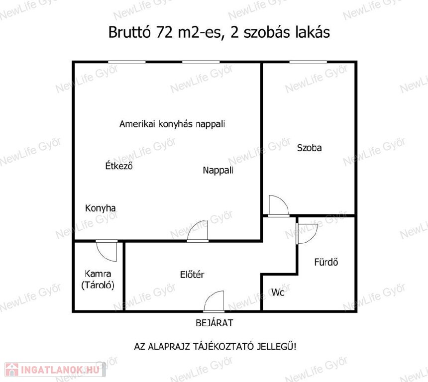 Amerikai konyhás nappalis + hálószobás téglalakás Győr belvárosától 8-10 perces gyalogtávolságra