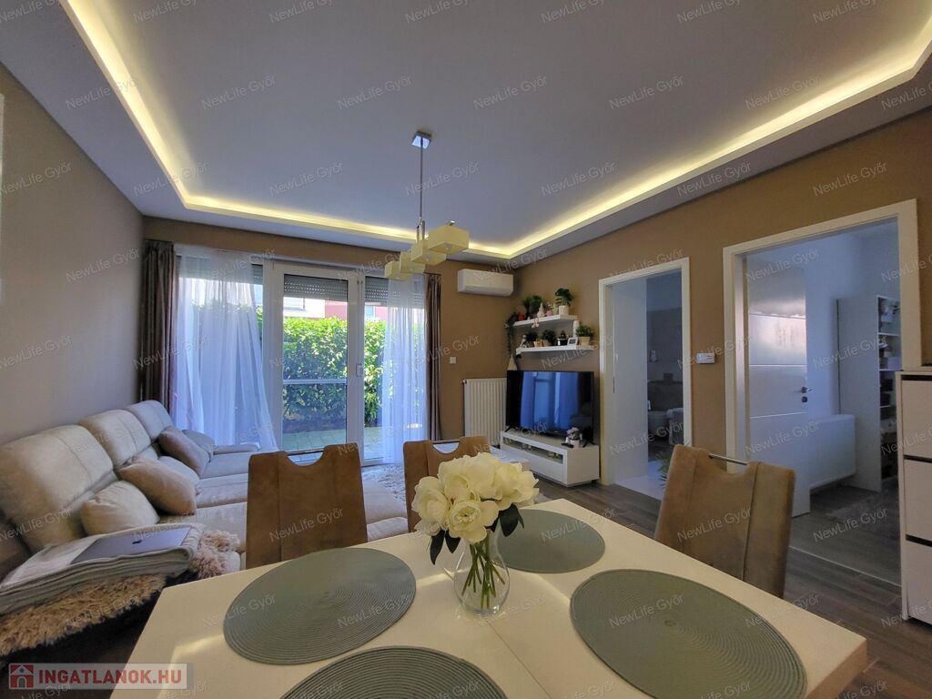 Ez nem álom – ez Győr-Ménfőcsanak egyik legcsendesebb részén található, 48 m²-es modern földszinti lakás mindezt valóra váltja.