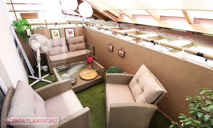 • Tökéletes elosztás: földszinten étkező-konyha-nappali, szoba, fürdő káddal, wc és egy terasz, ami a nappaliból és a szobából is elérhető