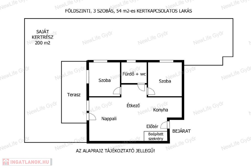 16 m²-es terasz + kb. 200 m² saját kert