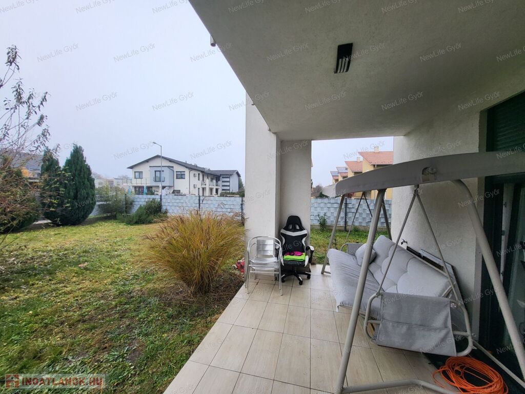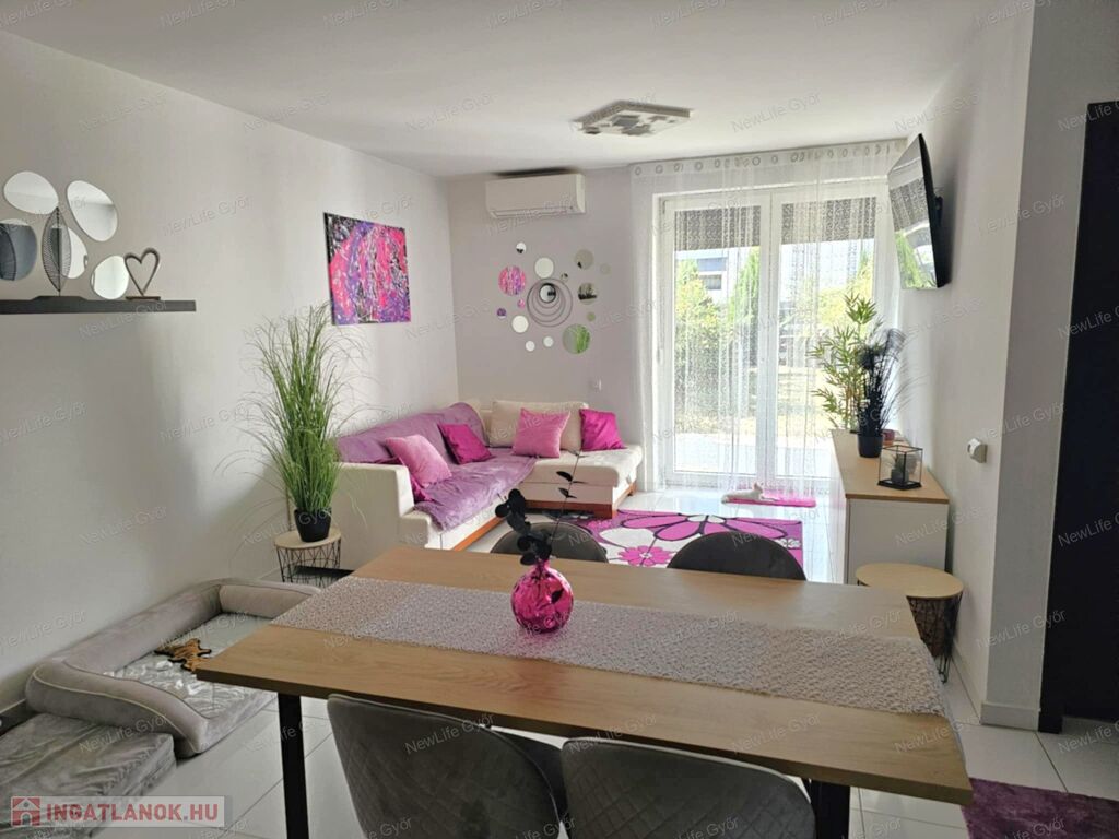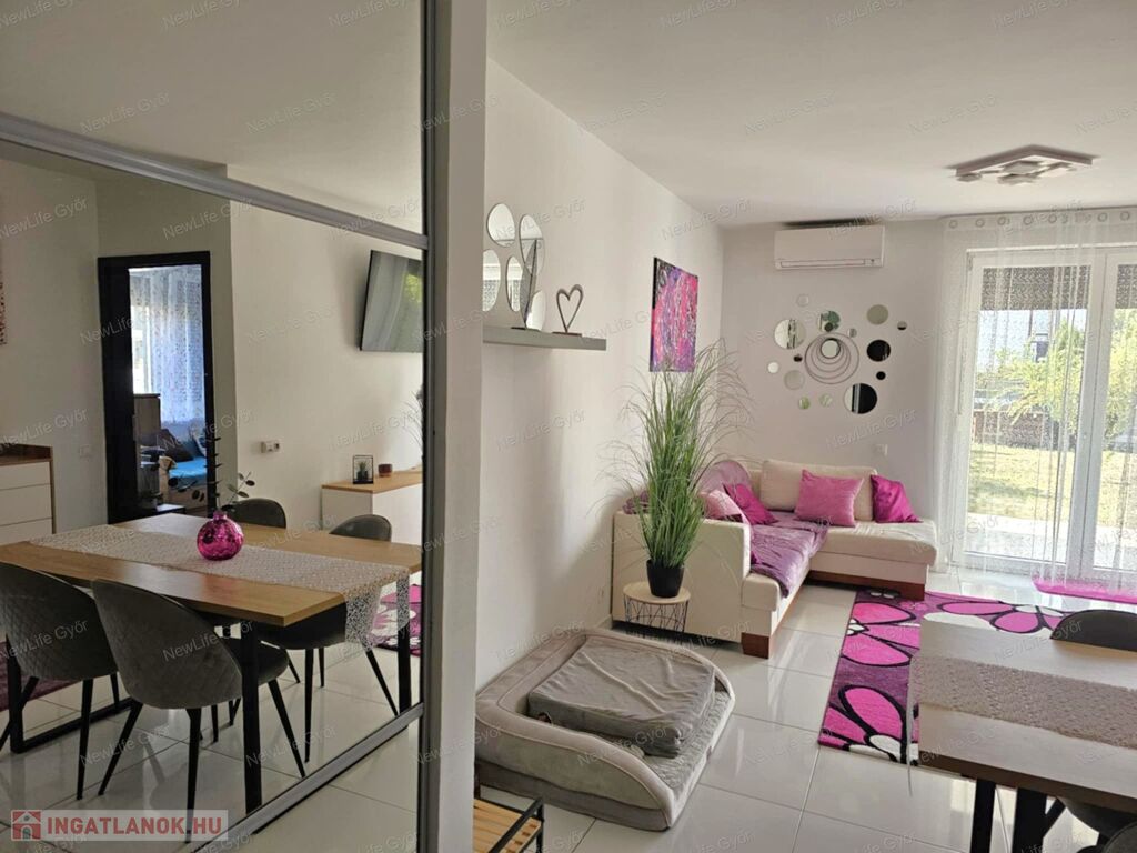 Újszerű, kertkapcsolatos, FÖLSZINTI lakás eladó Győr–Révfalu frekventált részén – saját parkolóval