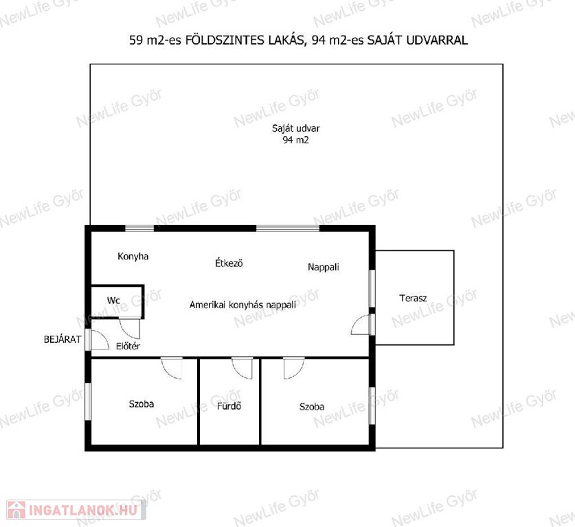 SAJÁT KERTES, ÚJSZERŰ, FÖLDSZINTES, 3 SZOBÁS LAKÁS MÉNFŐCSANAKON – TERASSZAL, KOCSIBEÁLLÓVAL!