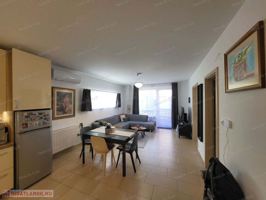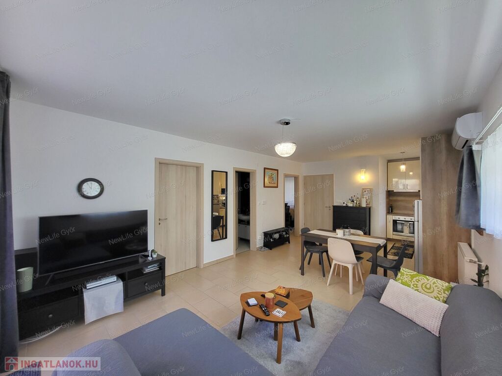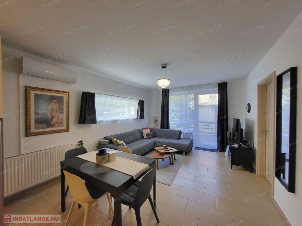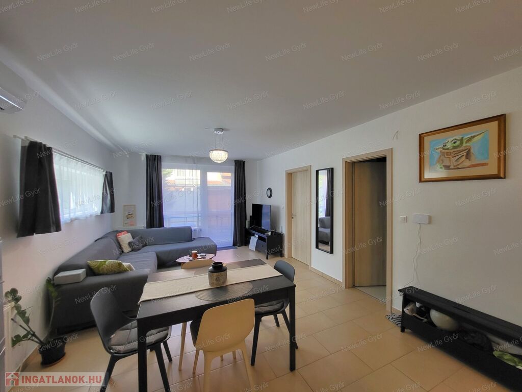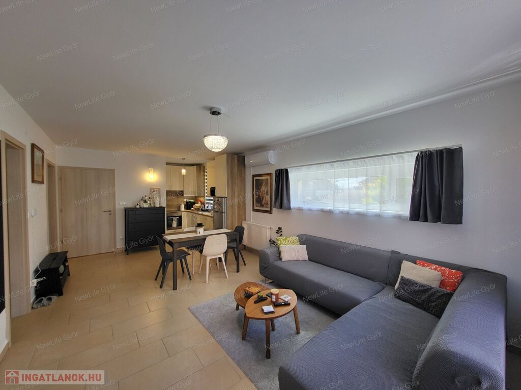 Eladó Győr egyik legkedveltebb, csendes kertvárosi részén, Ménfőcsanakon egy 2016-ban épült, újszerű állapotú, 59 m²-es földszinti lakás, amelyhez egy 94 m²-es, teljesen körbekerített saját udvar tartozik.