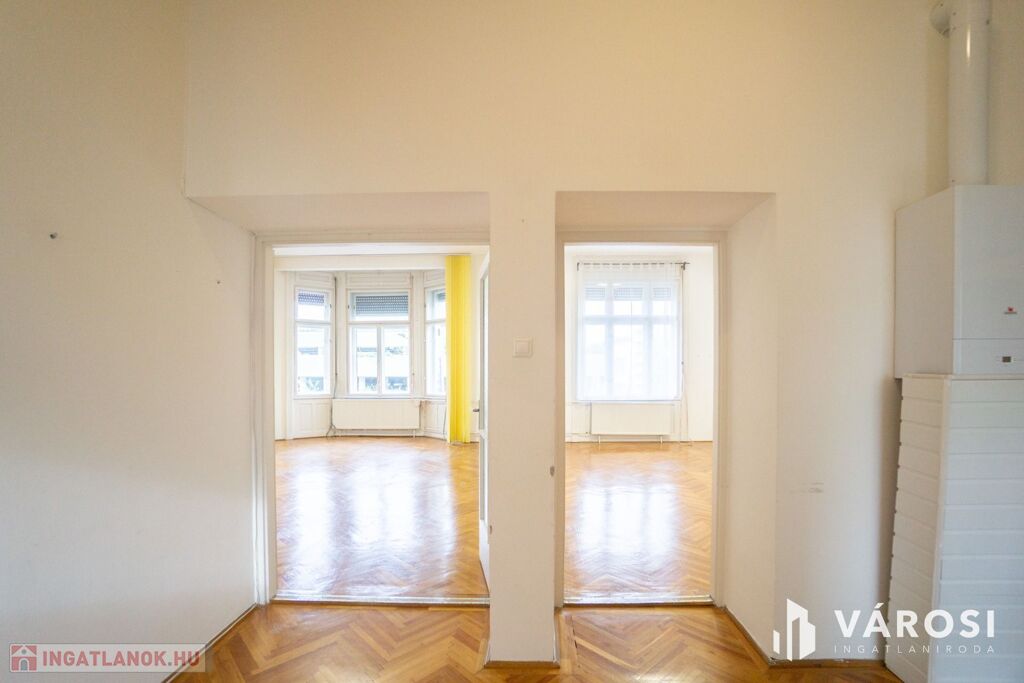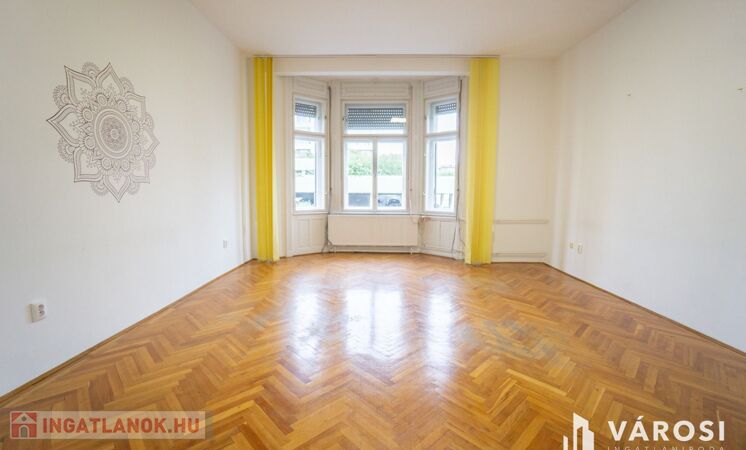 Győr történelmi belvárosában, az egyik legszebb belső udvarral rendelkező, három szintes épületében található ez a második emeleti, 94 m²-es, tágas és világos lakás.