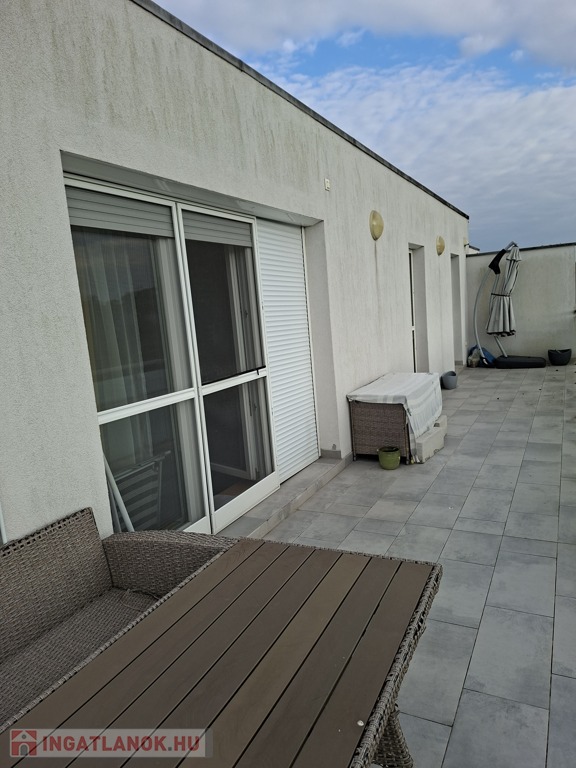 GYŐR-Szigetben újszerű, penthouse jellegű lakás eladó! Eladásra kínálom a 64 nm-es, 2 szoba + amerikai konyhás nappalis lakást amihez egy 27 nm-es terasz is tartozik és a csendes belső udvarra néz. A társas ház 2018-ban épült. A lakás újszerű állapotban van. Gépesített, beépített konyhabútor, beépített bútorok. Lakás előnyei: zárt udvari parkoló, modern elrendezés, kényelmes, világos belső terek. Elhelyezkedése: Egyetem pár perc séta, uszoda és belváros 10 perc séta, kissebb boltok a közelben, nagyobb bevásárlás 10 perc autóval. Csendes nyugodt környezet, mégis közel mindenhez! Tökéletes választás fiatal pároknak, családoknak vagy befektetőknek.