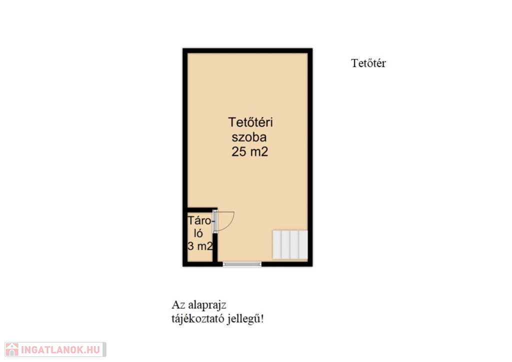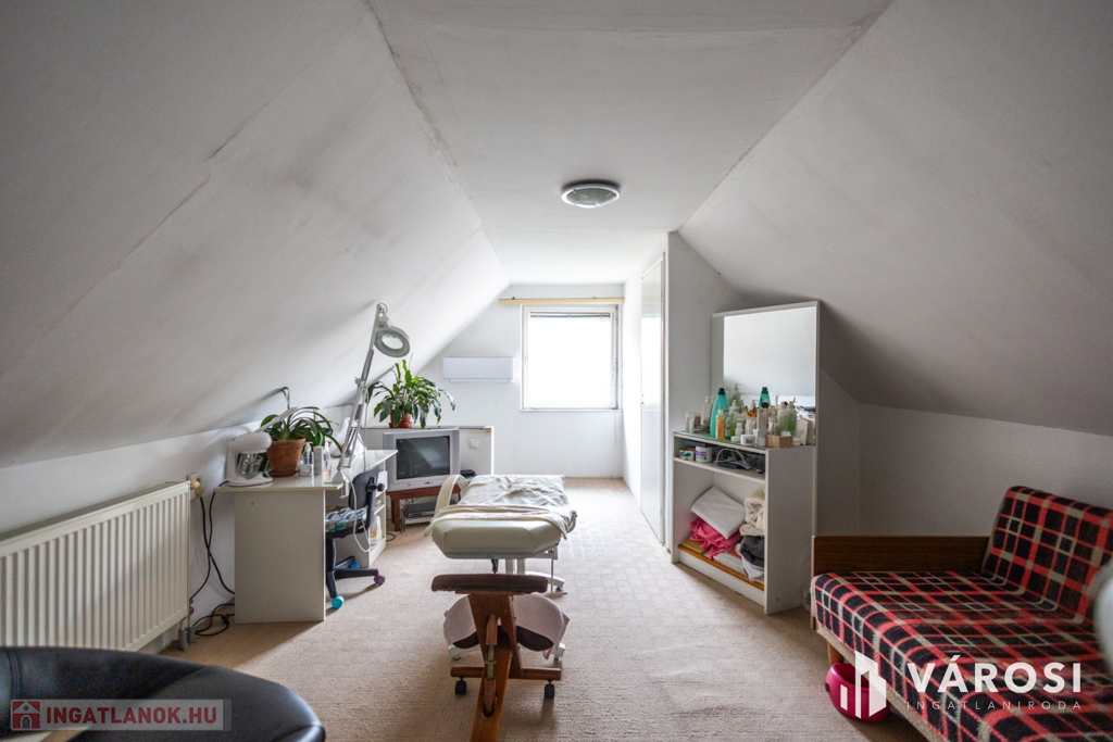 A lakás lenti része 36 m2, de mivel a tetőtér is beépítésre került, az ott lévő szoba és tároló hely hasznos terülte még plusz 28 m2.