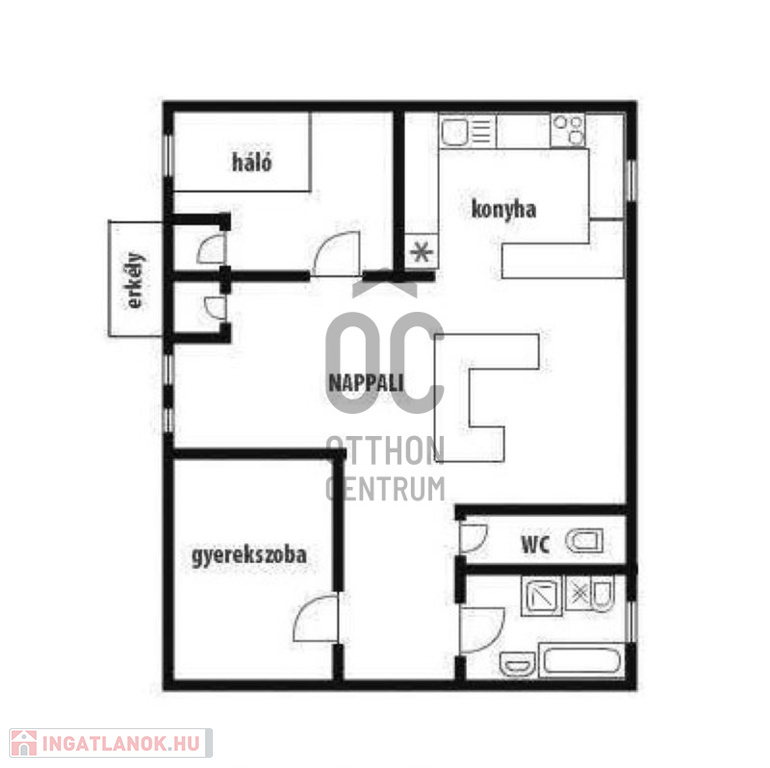 - 2 WC (egy a fürdőszobában, egy külön helyiségben)