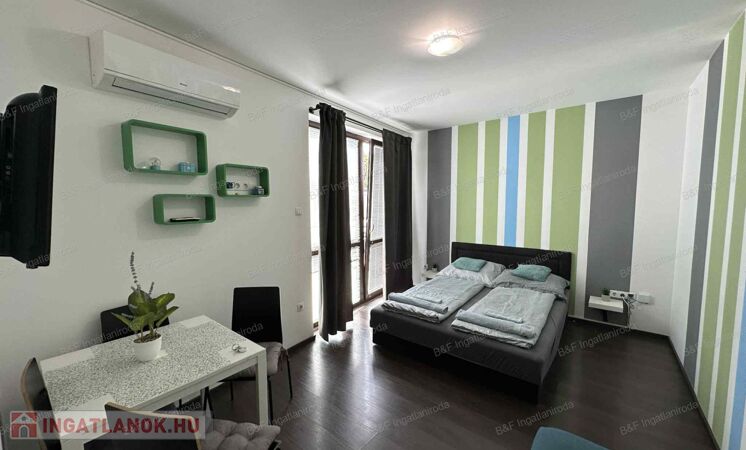Az első emeleti ingatlan 27 m2, de jó kialakítása miatt tágasabb érzést nyújt. Az árban a berendezés is benne van, így Önnek valóban csak a vendéget kell fogadnia.