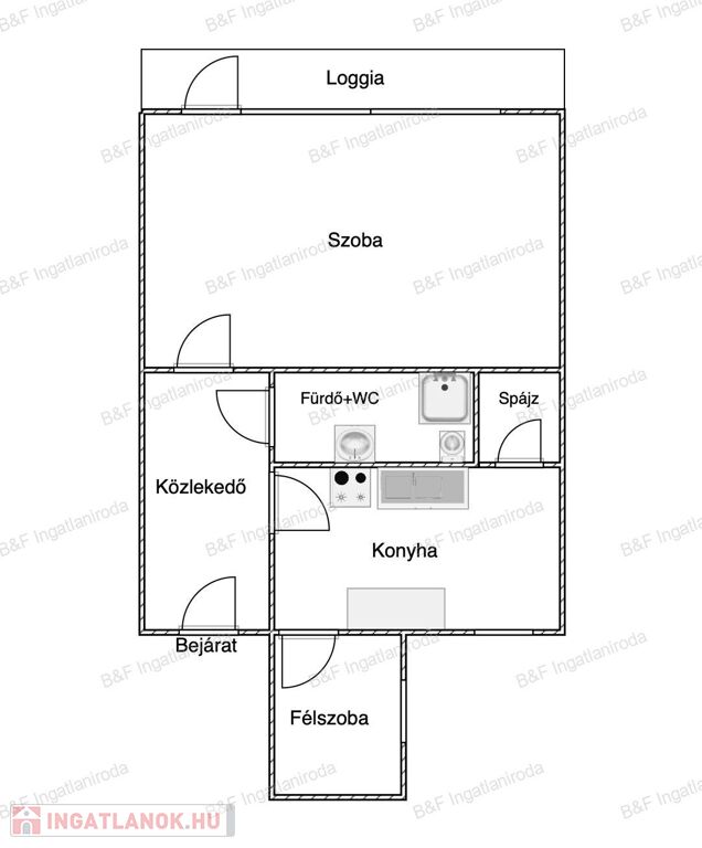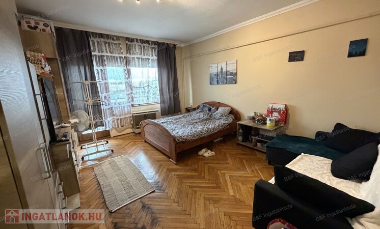 A lakásban egy tágas szoba és egy praktikus félszoba található, így a tér kihasználása rendkívül sokoldalú.
