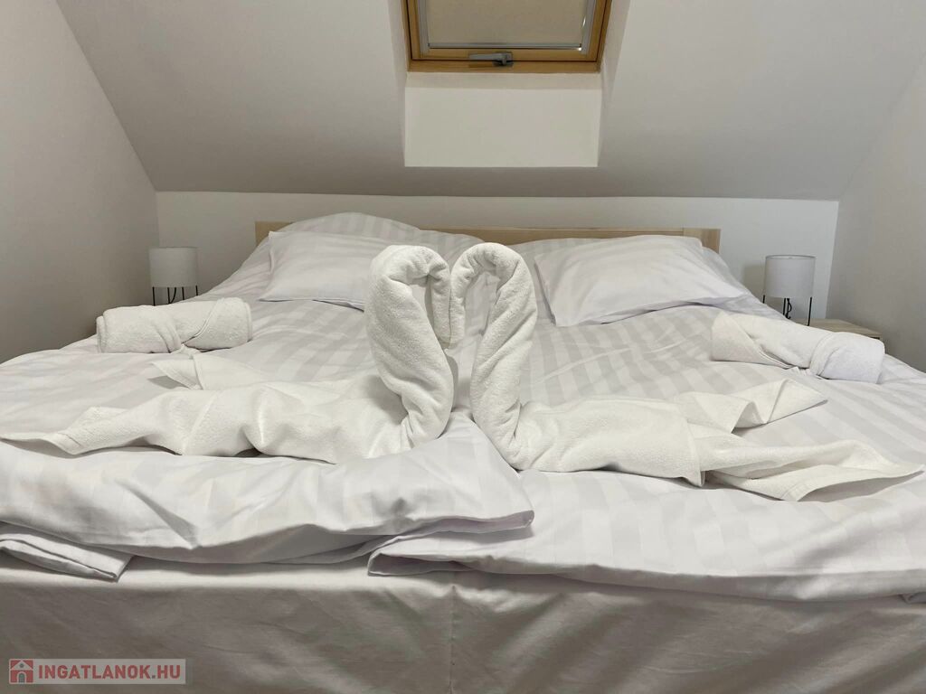 Hajdúszoboszlón fürdővel szemben új lakások eladók 56-70 nm,még 4 lakás eladó amit a tulajdonos visszabérelné tehát kifejezetten befektetőknek ajánljuk.A lakások a fürdő bejáratától 100 méterre helyezkednek el.Szauna,jakuzzi használat tartozik hozzájuk.Bútorozott,klimatizált teljesen felszerelt lakások.A műszaki átadás megtörtént 2022 Júniusában.A lakások 14 lakásos társasházban helyezkednek el Hajdúszoboszló legfrekventáltabb helyén.Az épület 3 szintes.A téglaépítésű szigetelt társasház napenergiát használ.A lakások fűtését kondenzációs gázkazán biztosítja,egyedi mérőkkel.A tetőre szerelt napelemek teszik lehetővé hogy a társasház kiegészítő áramforráshoz jusson.Tartoznak hozzá garázsok,illetve gépkocsibeállók.Ajánljuk befektetőknek,Az ingatlan tehermentes azonnal birtokba vehető.