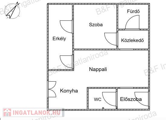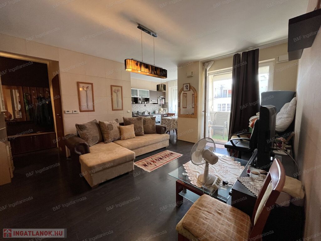 A tágas nappali egyben van a konyha-étkezővel, a napfényes szobát összeköti a 10 m2-es erkély a nappalival. A kényelmes fürdőszobától külön kapott helyet a wc.