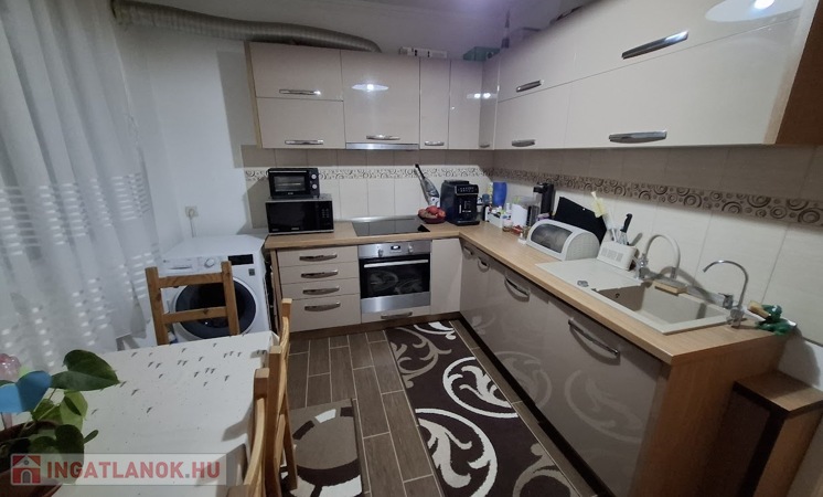 Hajdúszoboszlón Major utcán eladó egy 1 emeleti, 65 nm,3 szobás nagy ebédlőkonyhás, erkélyes, teljes körűen felújított szép lakás.A konyha és folyosó járólapos,a szobák laminált parkettásak és külön nyílnak.A fűtést távfűtés biztosítja állandó meleggel.Magasfényű konyhaszekrény került beépítésre,beépített gépekkel mosogatógéppel,sütővel.A nagy nappaliban felszerelésre került egy hűtő-fűtő klíma is.A fürdőszoba és wc külön helyezkedik el egymástól.A fürdőszoba teljes felújítást kapott új csempével,vízszereléssel és szaniterekkel.A folyosón teljesen új beépített szekrény került felrakásra, ami tárolásra és gardróbnak is kiválóan alkalmas.Új több ponton záródó fém bejárati ajtó került beépítésre.Kiváló elosztás,tágas világos jól élhető lakás jó szomszédokkal.A lakás parkra néző.Tiszta rendes lépcsőház jellemzi,közös tárolóval.Közelben boltok,piac,orvosi rendelő,Spar,fürdő,buszmegálló.Érdemes megnézni.Bármikor megtekinthető időpont egyeztetéssel.További ingatlanjaink a Teleingatlan oldalán több nyelven is hitel ügyintézéssel és ügyvédi segítségnyújtással egybekötve.Az ár irányár.