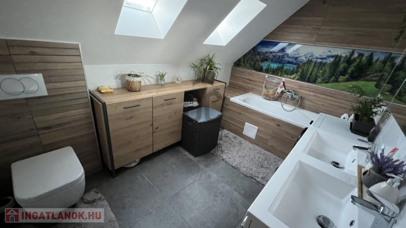 - nagyméretű fürdő dupla mosdóval szintén WELLIS-es