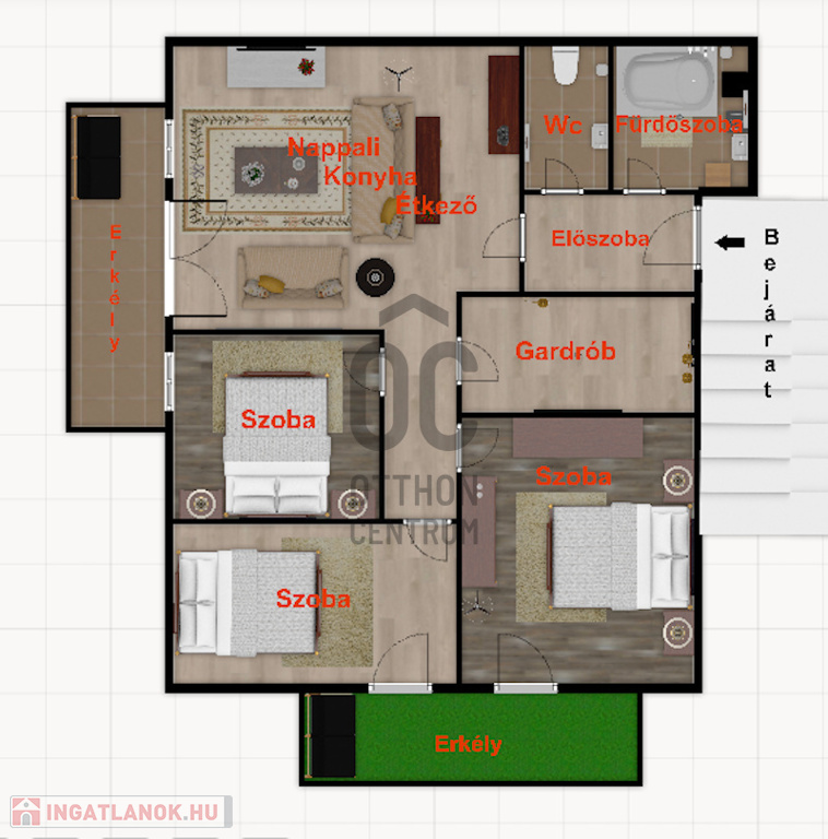 - az egyik erkély jelenleg napozó ágyas, a másik pedig prémium műfüves napernyővel, kis kiülő szettel