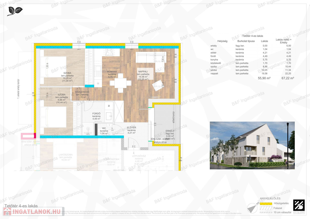 A 2 lakás alapterülete egyenként 55 négyzetméter, három tágas szobával rendelkeznek.