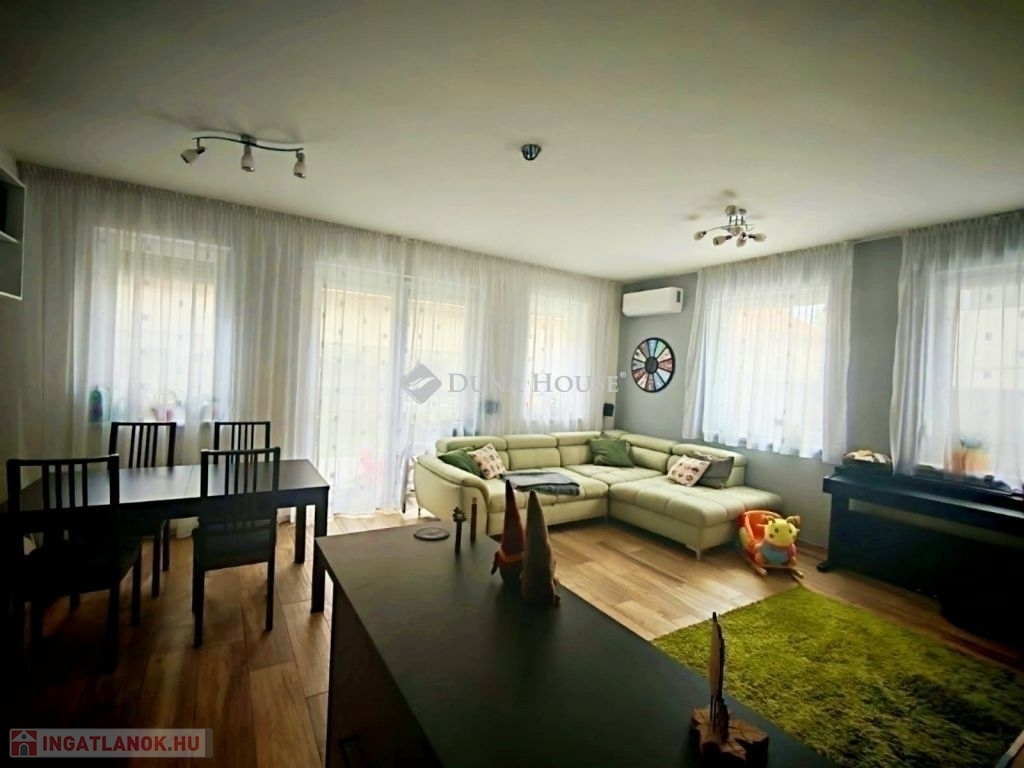 Halásztelek csendes, családias részén eladó egy hibátlan állapotú 2021-ben épült, földszinti lakás, amely 96 m²-es alapterületével és a nappali + 4 hálószobás kialakításával ideális választás lehet családok számára is.