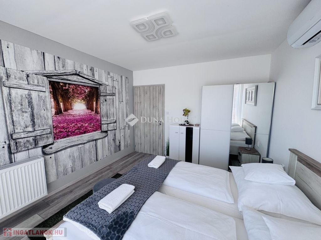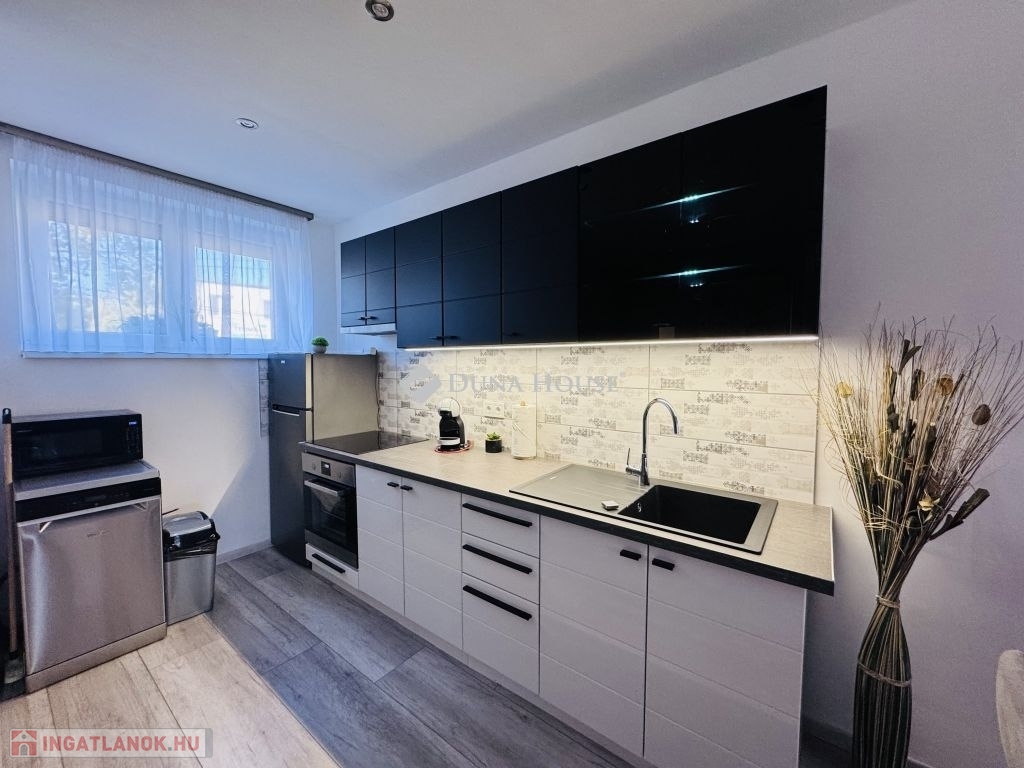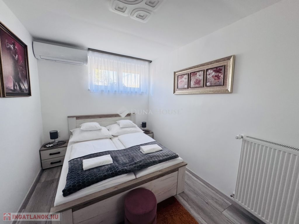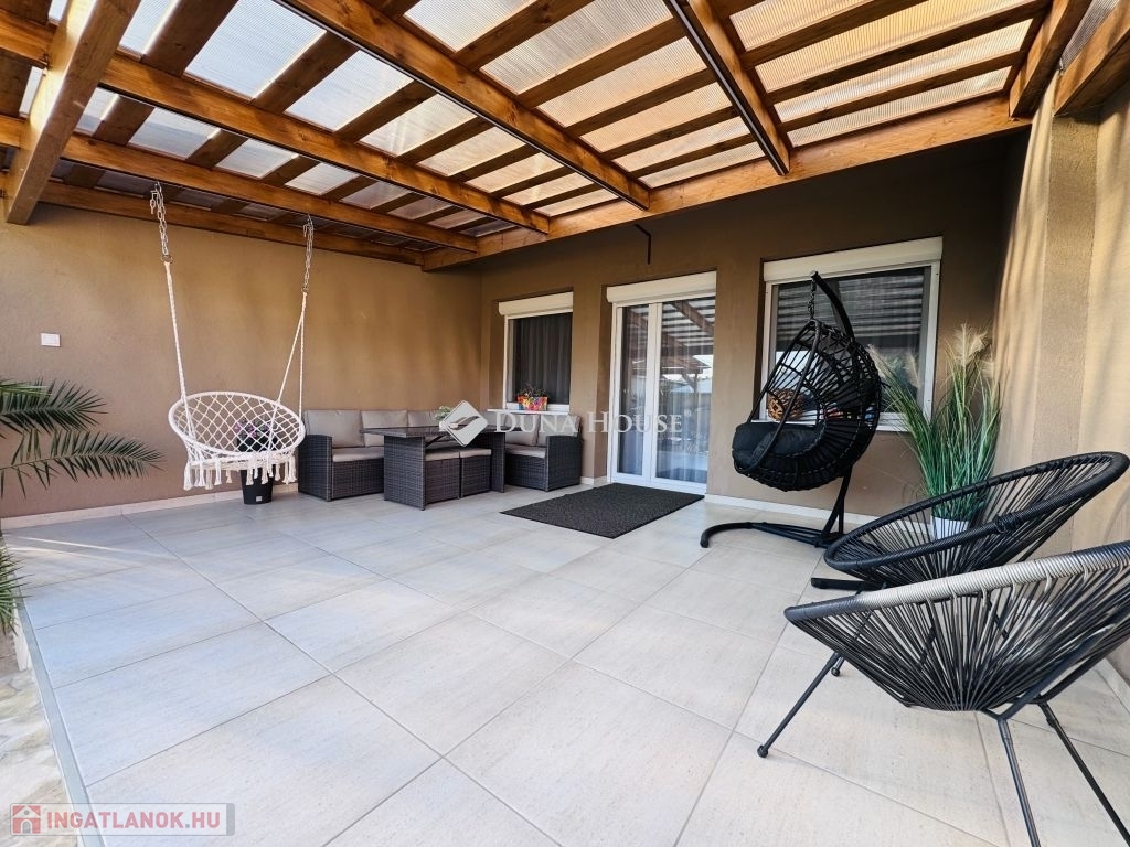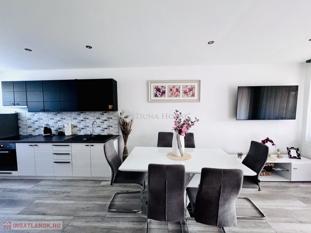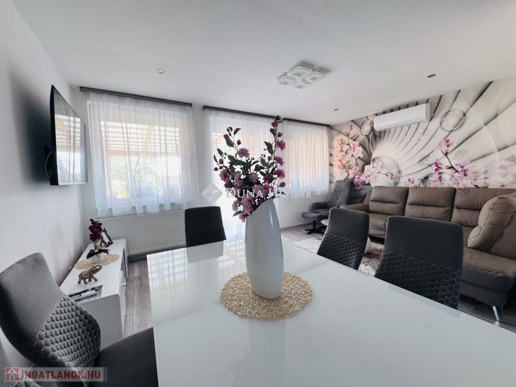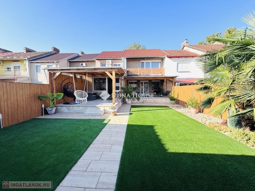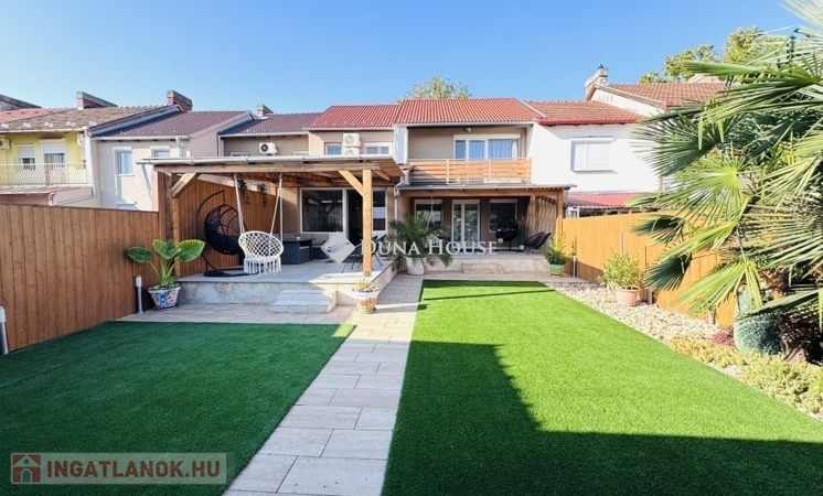 Eladó ígényesen felújított, belső kétszintes lakás kertkapcsolattal Harkány központjához közel!Harkány kedvelt, csendes családi házas övezetében, a fürdőtől és a városközponttól mindössze pár perces sétára kínálunk megvételre egy teljeskörűen felújított, belső kétszintes, kertkapcsolatos lakást.A lakás elosztása praktikus és tágas:amerikai konyhás nappali,két külön nyíló hálószoba,két igényesen kialakított fürdőszoba biztosítja a kényelmet.A nappaliból közvetlen kijárat nyílik a 22 m²-es fedett teraszra, amely a saját, mediterrán hangulatú kertrészre néz ideális hely a pihenésre és a baráti összejövetelekre.Az ingatlan teljes berendezéssel, bútorzattal, gépekkel együtt kerül értékesítésre, így az új tulajdonos azonnal birtokba veheti.További extrák:saját gépkocsi-beálló,igény szerint garázs is vásárolható.Ez a hangulatos, gondosan karbantartott otthon tökéletes választás állandó lakhatásra, nyaralónak vagy akár befektetésre is!