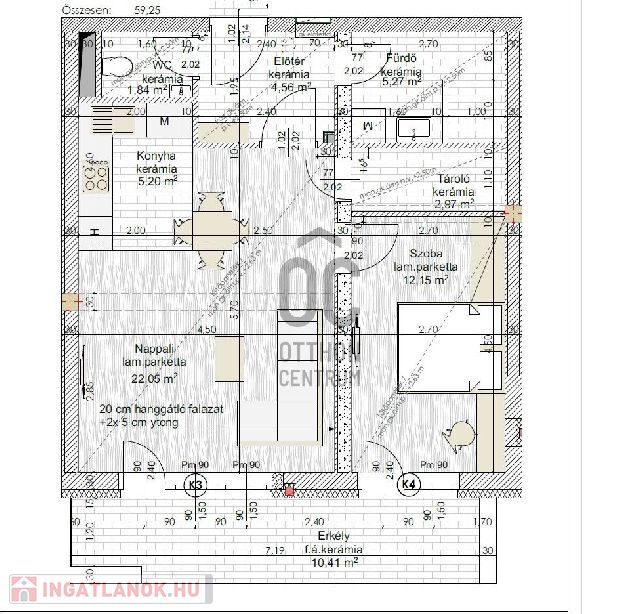 Az alábbiakban kínált 1. emeleti 59 m2- es lakás egy amerikai konyhás nappalival, hálószobával, fürdőszobával, tárolóval és 10 m2- es erkéllyel rendelkezik.
