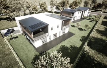 alapterületű, kertkapcsolatos földszinti lakás, amely egy most épülő, lapostetős, hőszivattyúval ellátott, négylakásos társasházban található. Várható